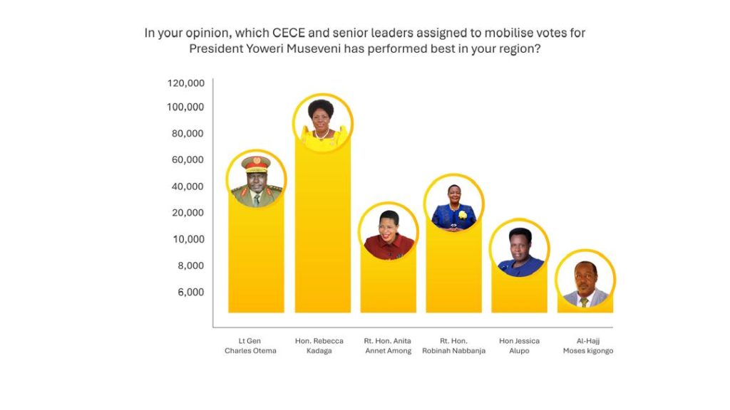 The assessment, which asked respondents to evaluate who achieved the most effective voter mobilisation in their respective areas, shows Kadaga with a commanding lead.