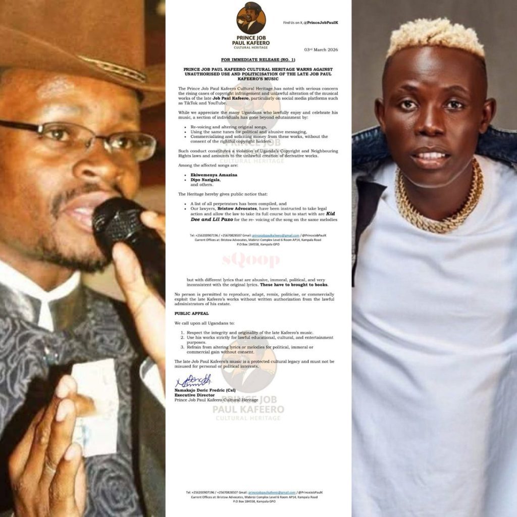 The Prince Job Paul Kafeero Cultural Heritage has issued a stern warning and instructed its lawyers to begin legal proceedings over what it calls the unauthorised alteration and politicisation of the late Paul Kafeero’s music.